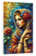 Gentle Gaze The painting depicts a woman with a serene expression, dressed in a royal blue headdress with delicate floral lace details. The vibrant colors and impressionistic style give the artwork a dreamlike quality, with soft focus and smooth brush strokes capturing her expressive green eyes and gentle smile. The...