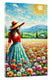 Blooming Fields of Grace The painting depicts a young woman running through a field of vibrant pink flowers, evoking a sense of freedom and joy. The flowing white dress and long blonde hair create a sense of movement and lightness, enhancing the dreamy and ethereal atmosphere of the scene. The...